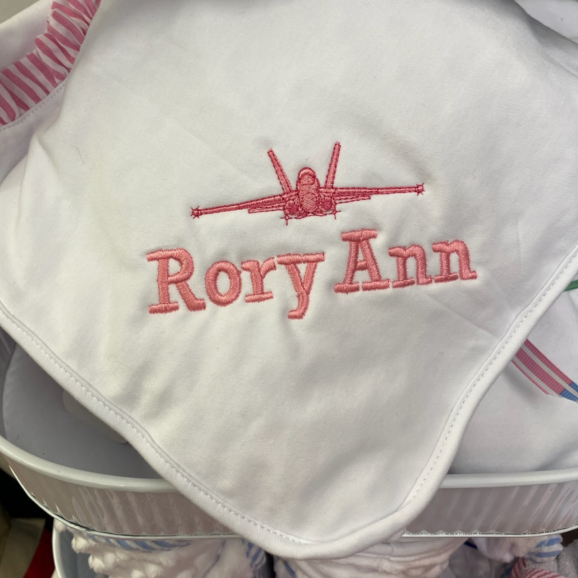Wrap your little one in luxury with our baby blanket. This 30x30 inch blanket features a soft and cozy white minky dot on one side and a bright white 100% interlock cotton on the other. The charming white cotton trim adds an adorable touch. Perfect for babies and toddlers, this blanket is versatile and comfortable. Personalize it with embroidery for a special touch.