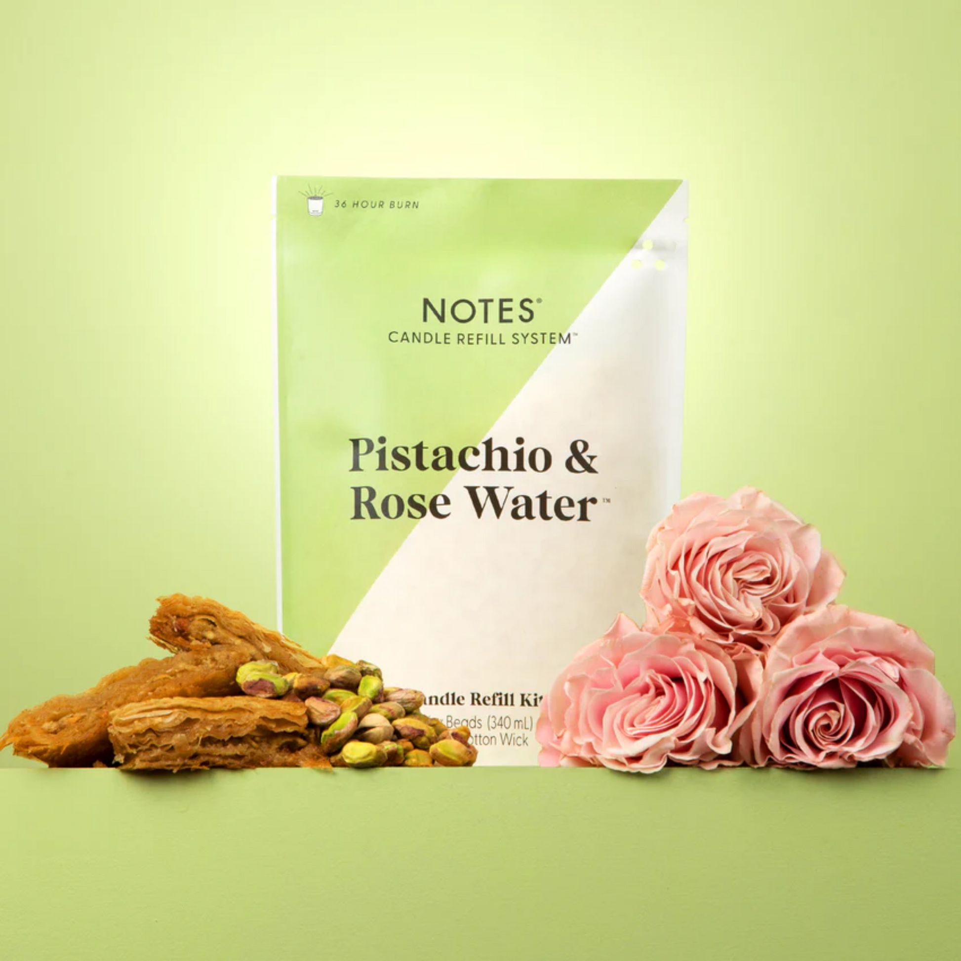 Each kit includes a perfectly portioned bag of fragranced wax beads and a 100% cotton wick. Simply insert the wick, pour the wax beads into your NOTES® Starter Glass and Silicone Cleanout Insert, and you're ready to go. You'll get up to 36 hours of room-filling fragrance you can feel good about.